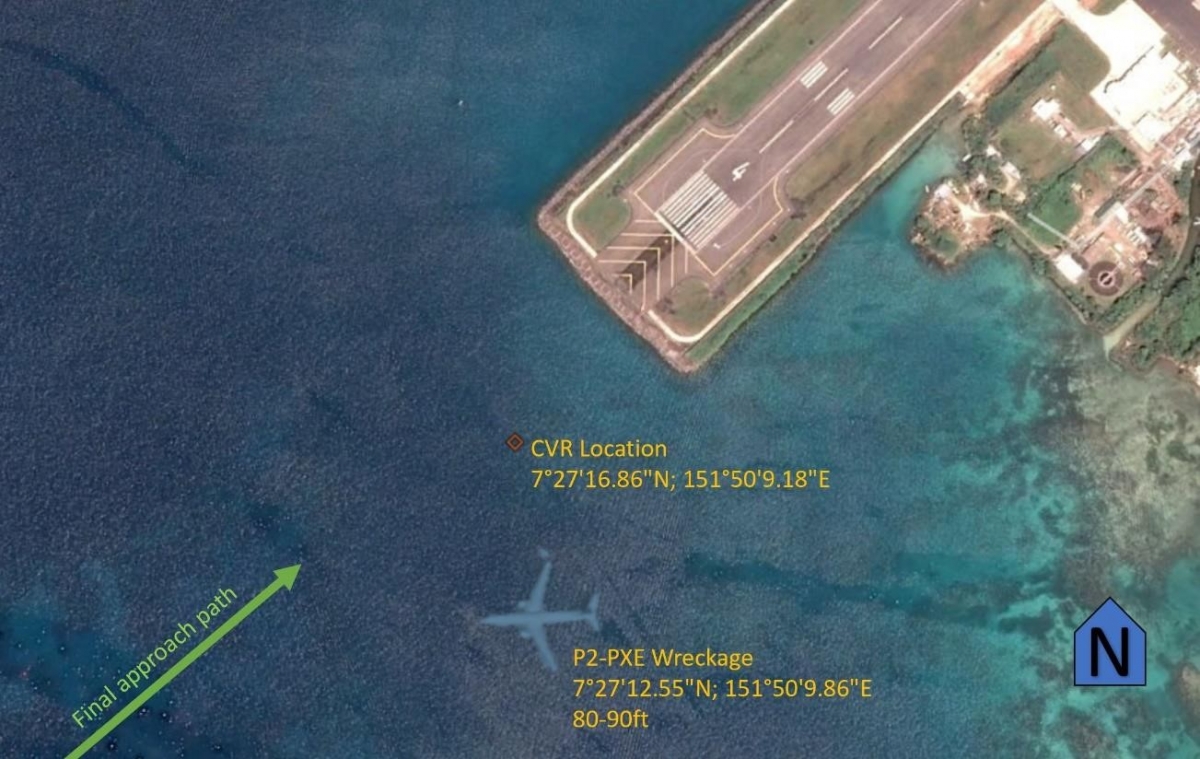 An Investigation was commenced by the Division of Civil Aviation of the Department of Transportation, Communications and Infrastructure (DT & CI) of the Federated States of Micronesia (FSM) with considerable assistance from the Papua New Guinea Accident Investigation Commission (AIC) in accordance with the principles of ICAO Annex 13. The aircraft SSCVR and SSFDR were recovered by divers and their data were subsequently successfully downloaded by the Papua New Guinea AIC. Divers also recovered the Automatic Flight Information Recording System (AFIRS) and EGPWS which were sent to their respective manufacturers where recovery of relevant data from the EGPWS was achieved under the supervision of the NTSB and that from the AFIRS unit was achieved under the supervision of the Canadian TSB. The AFIRS data was found to be “consistent with the data from the FDR”. An engineer travelling on the flight (see below) occupied the flight deck supernumerary seat during the approach and for personal interest video-recorded it from about 3000 feet on his smart phone. This survived the accident up to impact and was of high quality, providing “an invaluable source of vital information to complement and enhance the data from the FDR, CVR, AFIRS and EGPWS”.