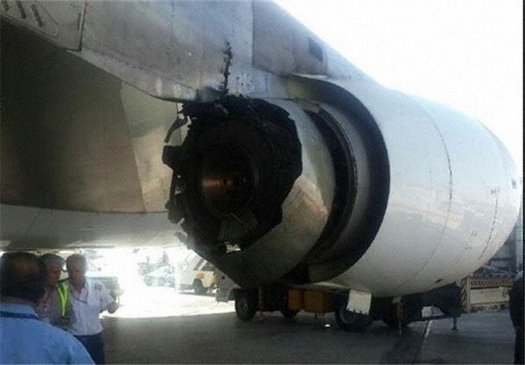 On 15 October 2015, an uncontained No 3 engine failure occurred soon after take-off to a Boeing 747-300 (EP-MNE) being operated by Mahan Air on a domestic passenger flight from Tehran Mehrabad to Bandar Abbas as flight 1095 in day VMC. The adjacent outboard engine also failed after being damaged by ejected debris and the aircraft made a successful return to its departure airport but then had to be towed off the runway because hydraulic systems losses had disabled the nose wheel steering. Substantial damage was caused to both the airframe and both right hand engines. Although aircraft control difficulties after the failure caused considerable discomfort to passengers and cabin crew, there were no injuries and post-flight passenger disembarkation was completed normally.