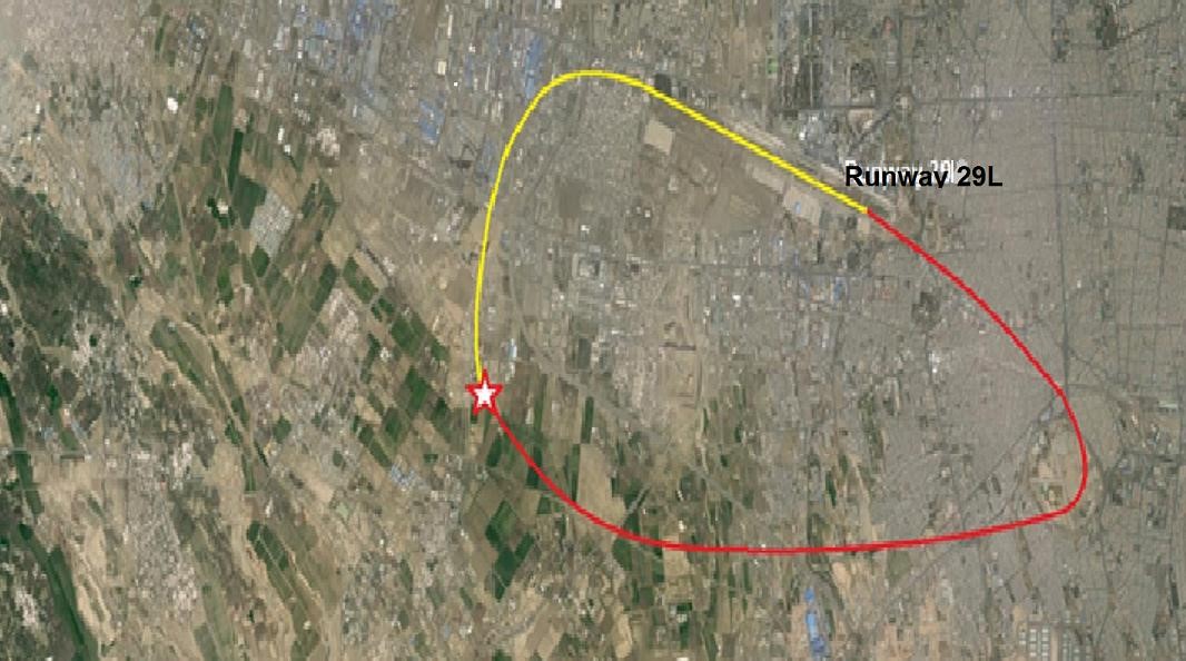 The reconstructed ground track showing the position of the engine failure. [Reproduced from the Official Report]