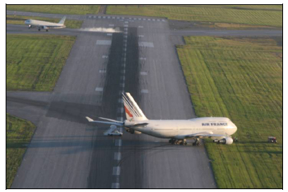 On 26 August 2008, a Boeing 747-400 being operated by Air France on a scheduled passenger flight from Paris CDG to Montréal landed on Runway 24R at destination and during the landing roll in normal day visibility veered to the right and stopped with the nose landing gear off the side of the runway. The final stopping position is shown in the picture below taken from the official report. There were no injuries and after a delay, the 509 occupants were disembarked from the aircraft onto buses. The aircraft was not damaged.