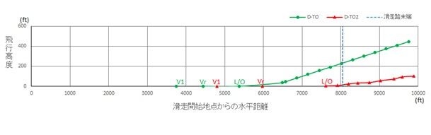 The TLR provided for the investigated departure showed that D-TO2, with an assumed temperature of 40°C and flap 10 had been used for the 16R data calculation and D-TO with an assumed temperature of 38°C and flap 20 had been used for the 16L data calculation. A comparison of the actual takeoff as made using the 16R D-TO2 data as modified by the 2° reduction in assumed temperature and derived from QAR data (red) and what would have been the result of using the (correct) D-TO data for 16L (green) is illustrated below with the feet used as the scale for both axes and the end of runway 16L shown as a broken vertical line. The effect on the initial rate of climb was clearly considerable.