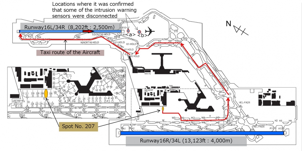 The runways at Narita and the taxi route followed by the aircraft. [Reproduced from the Official Report]