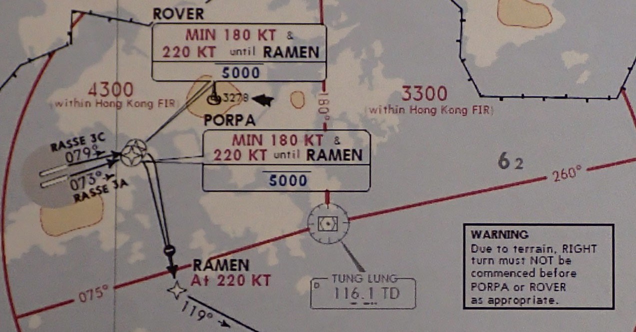 Noting that runway 07R could be expected for departure, the Captain prepared for the ATIS-advised RNAV 1 SID ‘RASSE 3A’ (see the illustration below) and gave a corresponding preliminary departure briefing to the First Officer. He had already loaded the company-filed flight plan, which did not include the expected SID, in the FMC. The PM did not carry out an independent verification of the route. The crew then attempted to obtain a Data Link Departure Clearance but eventually received a voice clearance from ATC for a ‘RASSE 1E’, a Radius-to-Fix (RF) SID with which the crew were unfamiliar and which was only intended to be offered to operators based in Hong Kong but given because the flight was operating under a Cathay Pacific callsign. Also, according to the relevant Jeppesen Airport Briefing Page consulted by the crew, any approved aircraft planning to fly an RF SID must explicitly request this which, since the crew involved were not familiar with such SIDs, was not done.