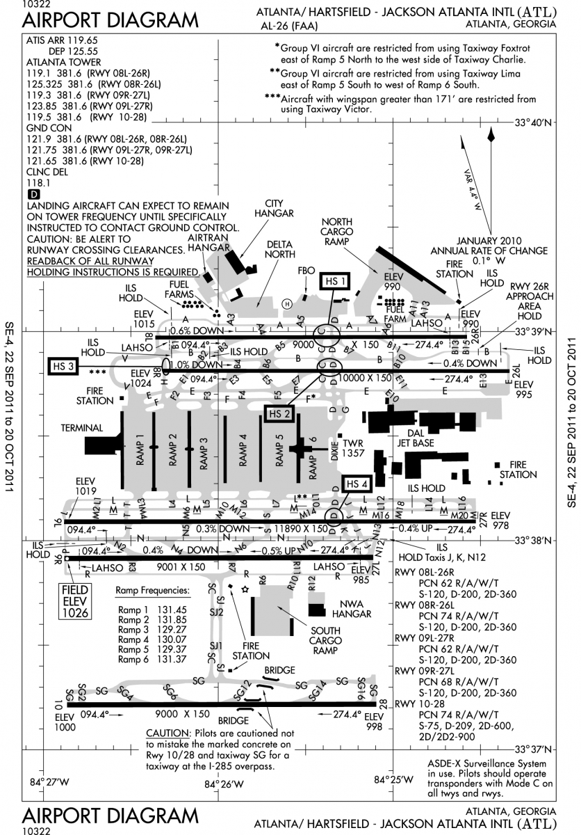 All five runways at Atlanta were oriented approximately east-west and 27R was 3625 metres long and 45 metres wide. Taxiway ‘M’ was only 50% the width of the runway and was equipped with standard blue edge lights and standard green centreline lights.