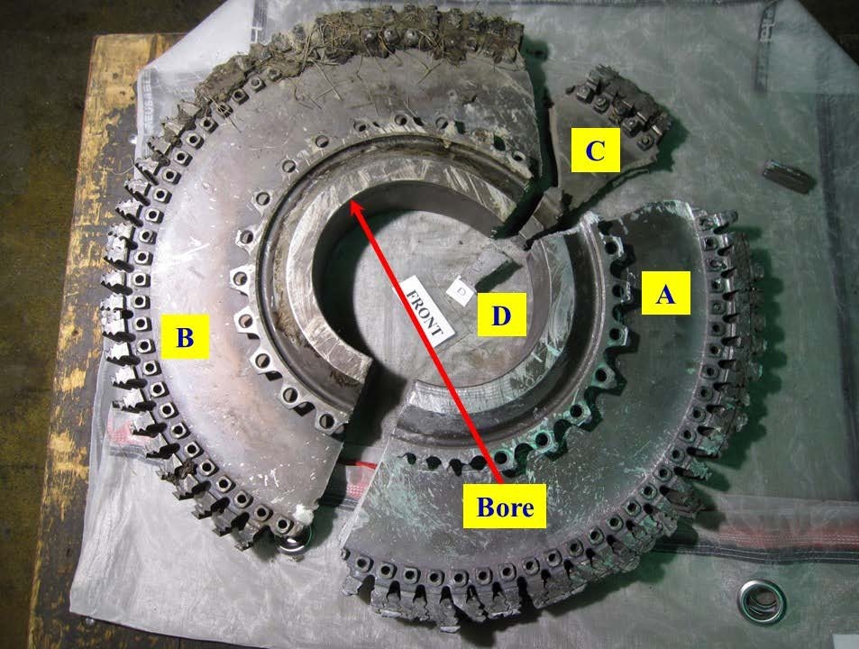 The main fragments of the HPT Stage 2 Disc viewed from the front. [Reproduced from the Official Report]