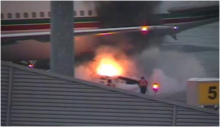 Ground crew attempting to extinguish the fire prior to arrival of the Airport Fire Service (reproduced from the Official Report)