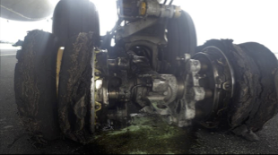 Fire Damage to Left Main Landing Gear (looking rearwards)[reproduced from official report]