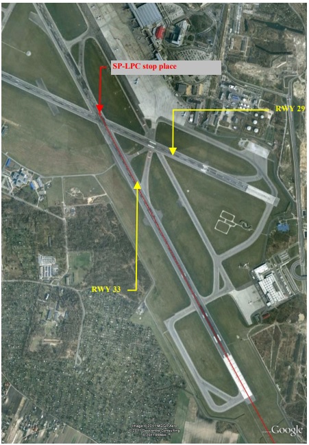 The aircraft track to its stopping point showing deviation right of centreline during deceleration. [Reproduced from the Official Report]