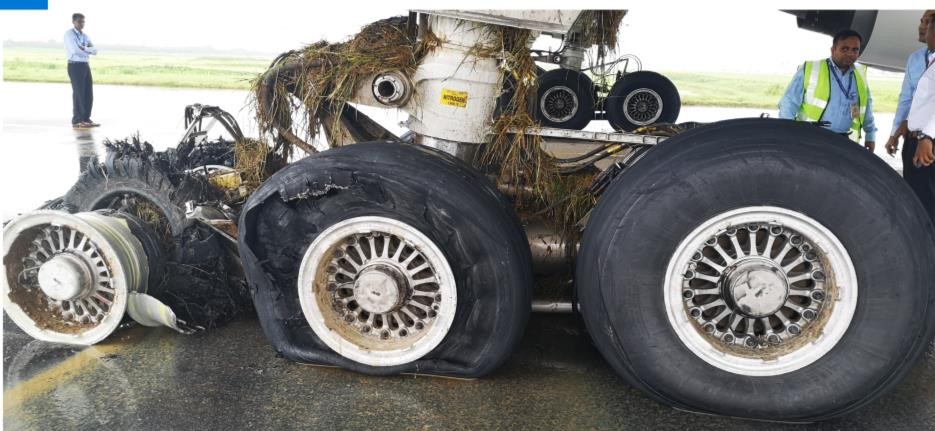 - The right main landing gear tyres being retreads may have been less able to sustain the shock and resulting major damage after hitting, one after another, the nine manholes/handholds adjacent to the paved runway surface.