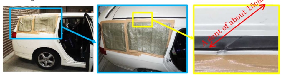 The damaged vehicle after recovery from the impact site. [Reproduced from the Official Report]