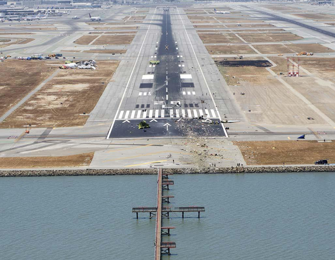 On 6 July 2013, a Boeing 777-200ER (HL7742) being operated by Asiana Airlines, on a scheduled passenger flight (214) from Seoul Incheon to San Francisco, crashed within the airport perimeter shortly before completing a landing in day VMC after the aircraft had hit the sea wall situated prior to the runway and the tail had detached. The aircraft was destroyed by the impact and a post crash fire. Three of the 307 occupants were fatally injured, 49 sustained serious injuries and 138 sustained minor injuries. The other 117 occupants were uninjured.