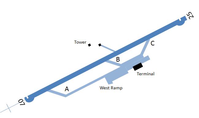 Schematic of runway and taxiway layout at St Kitts