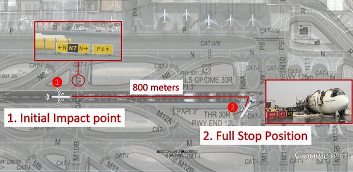 The aircraft track from just before touchdown to the point of impact and final stopping position. [Reproduced from the Final Report]