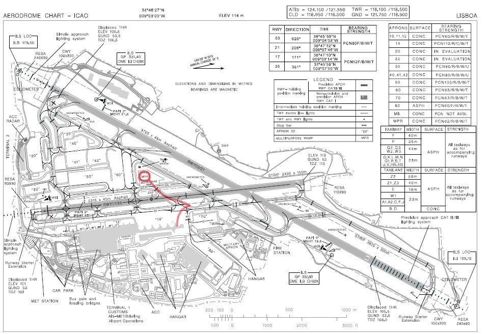 - that ANA AEROPORTOS DE PORTUGAL should ensure that Lisbon Airport does not authorise manoeuvres involving 180º turns with class E aircraft on the Multi Purpose Ramp – such aircraft should be only parked nose in or nose out taking into account the respective ACN. [14/2016]