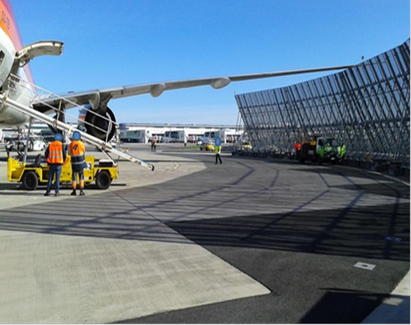 - The pushback procedure which was required in order to position the aircraft so that the obstacle created by the blast deflector was avoided.