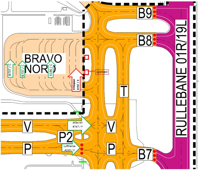 - Airport Operator Avinor has initiated a revision to the AIP Norway to add information about the maximum wingspan permitted on each de-icing stand and added ground markings to the lead-in lines to all de-icing stands.
