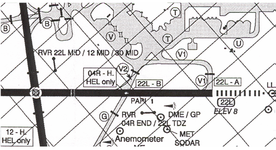 Airport layout in the vicinity of the incursion at the time of occurrence. Reproduced from the Official Report.