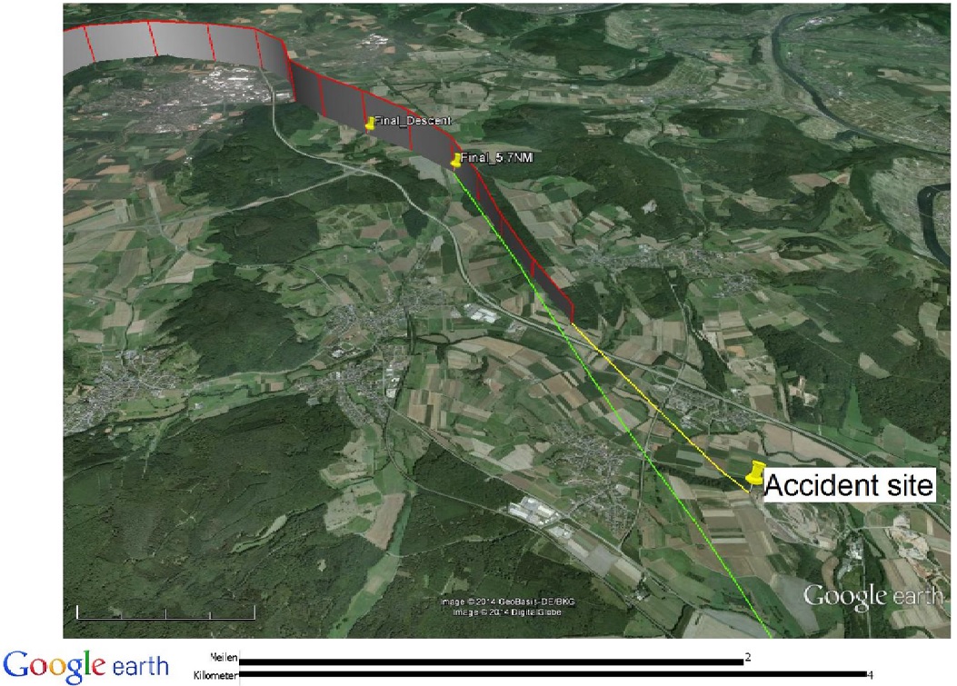 The Investigation concluded that the final descent towards runway (see the reconstruction of the approximate flight path below) had been conducted by relying on the VNAV function of the GPS whilst in the complete absence of visual reference. The available evidence was considered to point to erroneous programming of the target descent altitude so that the aircraft was then unintentionally flown towards a position which was below the level of the prevailing terrain. It was surmised that cooperation between the two pilots may well have suffered due to tension between them and that effective CRM would have been compromised as a result, although there was no direct evidence of this or any part it may have played in the accident.