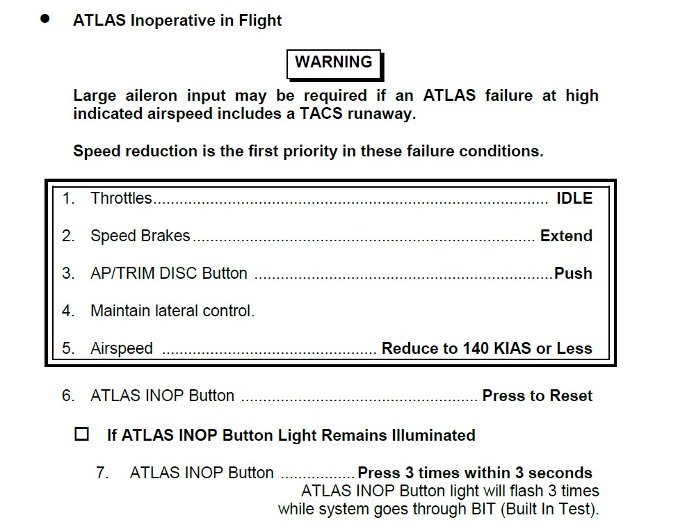 The relevant parts of the ‘ATLAS inoperative procedure’ included in the AFMS were as follows.