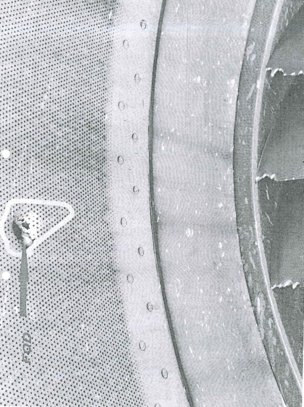 Following the initial post-flight finding of damage to all left-hand engine fan blades, further investigation led to the discovery of a metal bolt “stuck in the acoustic lining of the upper part of the fan intake” (see below). Subsequent examination of the engine at the overhaul facility found that there was no damage to the engine other than that first seen to the fan section upon visual inspection.