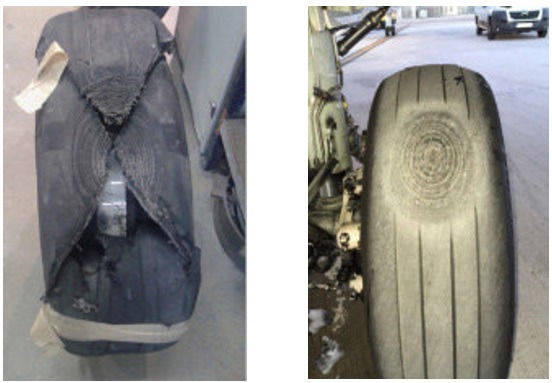 The condition of the No 1 (on the left) and No.4 (on the right) tyres. [Reproduced from the Official Report]