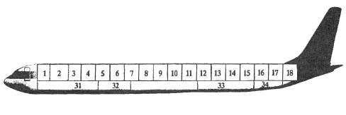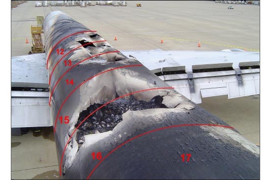 Damage the crown of the fuselage showing the locations of some of the main deck containers. [Reproduced from the Official Report]