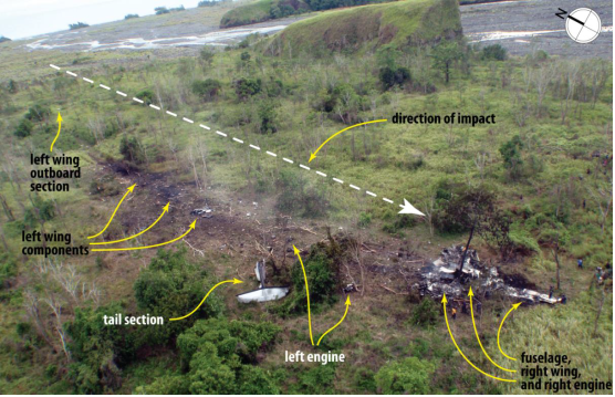 - The landing gear and flaps remained retracted during the crash landing which led to a higher landing speed than could have been achieved if the gear and flaps had been extended as well as to increased impact forces on the airframe and its occupants.