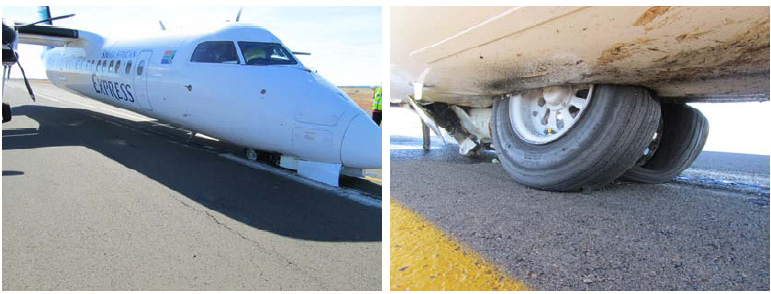 On 16 July 2010, a Bombardier DHC 8-300 being operated by South African Express Airways hit an animal during a night landing in normal ground visibility at Kimberley after a passenger flight from Johannesburg. The nose landing gear took a direct hit and collapsed but after a temporary loss of directional control, the runway centreline was regained and the aircraft brought to a stop. A ‘MAYDAY’ call was made by the aircraft commander during the deceleration. None of the 44 occupants were injured.