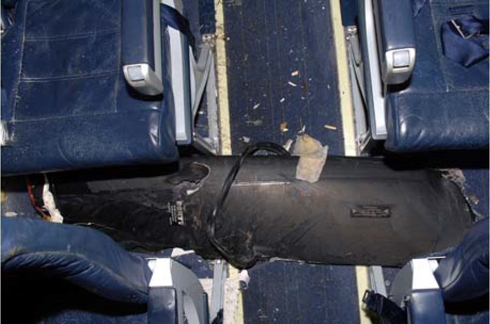 The passenger cabin showing another propeller blade lying across the aisle. (Reproduced from the Official Report)