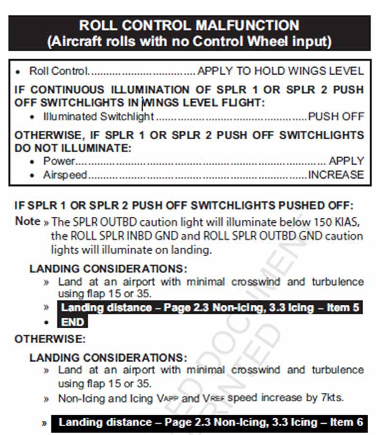 The QRH Roll Control Malfunction Checklist. [Reproduced from the Official Report]