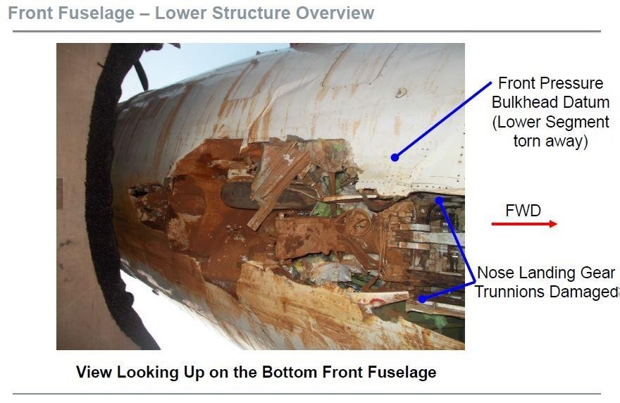 Lower forward fuselage damage. [Reproduced from the Official Report]