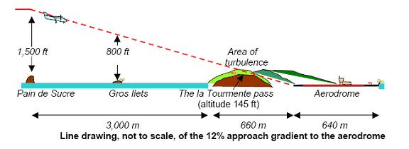 On 24 March 2001, a De Havilland DHC-6, operated by Caraïbes Air Transport, lost control during a VFR approach to Saint Barthelemy airport in the French Antilles. On short final the aircraft took a sharp left turn which resulted in impact with the terrain.