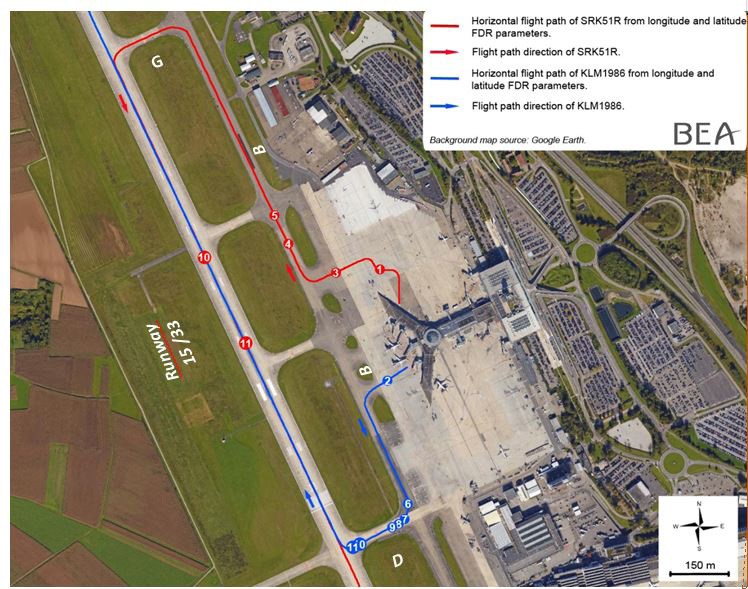 An Investigation was carried out by the BEA France. Recorded flight data was available from both the aircraft involved but relevant recorded voice data had been overwritten. A record of relevant ATC communications was available and interviews with the pilots involved were conducted. All ATC communications were conducted in English. Pilot experience information was not recorded but it was noted that although the E190 First Officer had been designated as PF, the Captain was responsible for taxiing the aircraft due to the absence of a steering tiller at the First Officer position. The TWR position was occupied by an experienced controller who was being supervised by an OJTI in order to qualify at Basel Mulhouse after transferring as an experienced controller and OJTI from Nice.