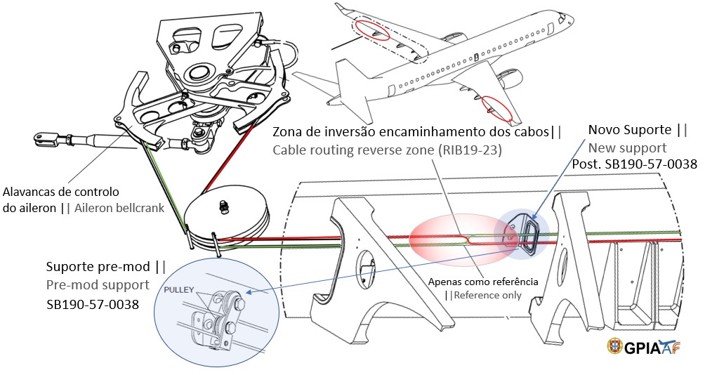 The Investigation found that some of Embraer’s technical instructions relevant to aileron control cable removal and installation were complex and presented in such a way that there had been “a high potential for misunderstanding” with the illustrations. In the absence of any adequate graphical differentiation, these were considered by both those directly involved and by other staff not directly involved but who had with relevant experience to be in a “confusing” format. It was also considered that the SB 190-57-0038R2 requirement to completely disconnect both control cables in each semi-wing to accomplish the modification had “facilitated an incorrect reinstallation (by) not complying with the normal certification specifications” (see below).