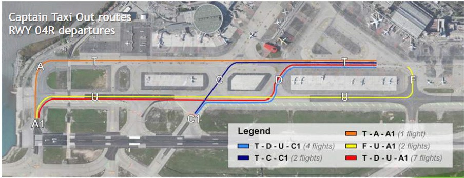 The Captain’s record of his previous taxi out routes for 04L takeoffs at Nice. [Reproduced from the Official Report]