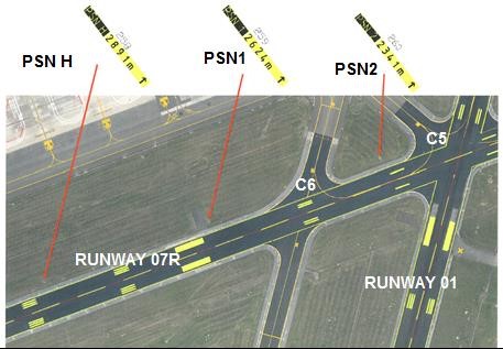 The arrangements for intersection take-offs from runway 07R were reviewed and it was noted that, as in the case of the investigated departure, all such departures would require aircraft to enter the runway via taxiway C6. Declared distances for three such take-off positions were provided in the AIP and marked by illuminated signs - see below - and designated as Positions H (for 'Heavy'), PSN 1 and PSN 2. No explicit mention of "PSN 2" was made to the departing E195.
