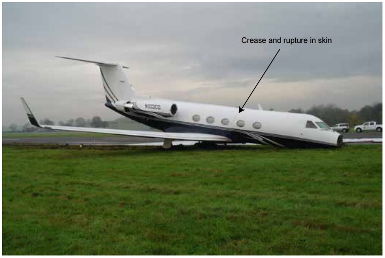 The aircraft as it came to rest, showing area of skin crease and rupture (reproduced from the Official Report)