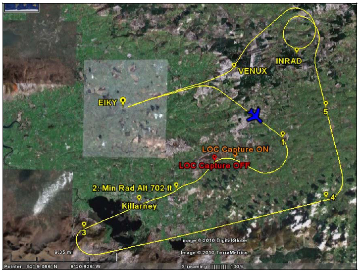 Track of the Aircraft (note that ‘LOC’ above corresponds to ‘LLZ’ in the text). "Source:" AAIU Synoptic Report No: 2010-012