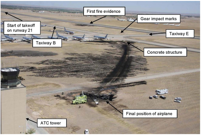 On 2 April 2011, a Gulfstream G650 being operated by the manufacturer on a pre type-certification test flight failed to become properly airborne when attempting a take off from Roswell for a local flight in normal daylight visibility with one engine intentionally inoperative. The right wing had been observed to touch the runway before the aeroplane impacted ground obstacles and caught fire with the resultant deaths of all four Gulfstream employee occupants and destruction of the airframe.