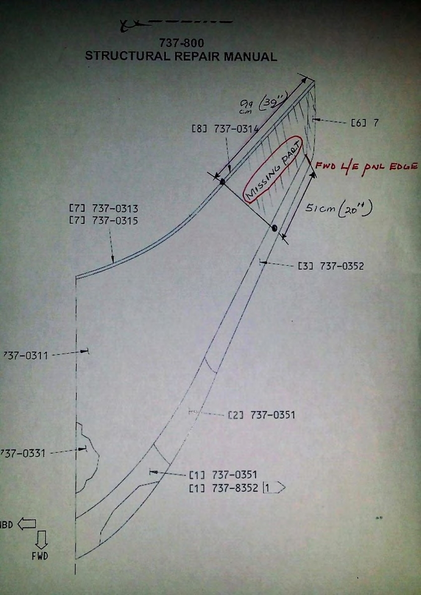 A drawing showing the dimensions of the wingtip damage to the 737. [Reproduced from the Official Report]