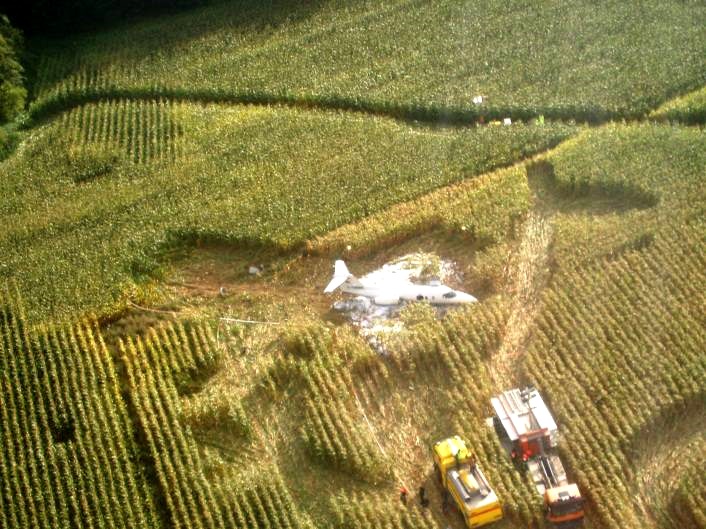It was established that the standing crop in which the aircraft had crashed was approximately 3 metres tall and considered that this and the low forward speed had both served to render the impact survivable. The crash site is shown below: