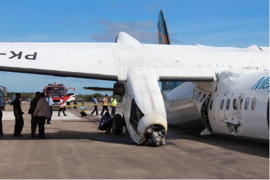 On 10 June 2013, a XIAN Xian MA60 (PK-MZO) being operated by Indonesian carrier Merpati Nusantara on a scheduled domestic passenger flight from Bajawa to Kupang/El Tari as MZ 6517 made a slightly steeper than usual visual final approach to the landing runway at destination and, after a sudden further increase in the rate of descent just before touchdown, hit the runway so hard that after it stopped, the wing box could be seen to have separated from the fuselage. Five of the 50 occupants, including one of the pilots, were seriously injured.