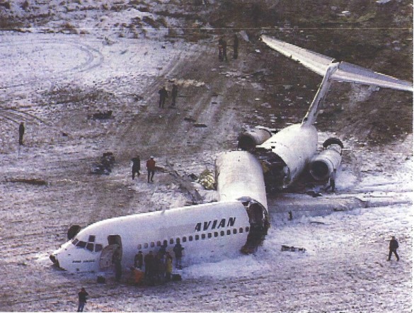 - In respect of the survival of all occupants, it was noted that this must be attributed not only to the way in which the forced landing was accomplished but also to a series of "fortunate circumstances". The presence on emergence from cloud of a possible landing site in a generally forested area, the opportunities for escape from the wreckage provided by the breakup of the fuselage into three parts which more than made up for the fact that not all of the emergency exits were useable and most crucial of all the absence of a post crash fire despite the large quantity of fuel spread over the crash site were cited. It was calculated that occupants in the front part of the aircraft would have experienced "stresses (which) were near the limit beyond which serious injury is inevitable".