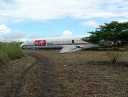 On 23 June 2006, a Boeing MD83 of Egyptian operator AMC Airlines under wet lease to Sudan Airways on a scheduled passenger flight from Nairobi to Juba overran the 2400 metre long landing runway at destination in normal day visibility. None of the 24 occupants were injured but the aircraft suffered significant damage to the nose and left main landing gear. Minor runway end ground lighting damage was caused by aircraft impact. ATC were not initially aware of the overrun as it was not visible from their position.
