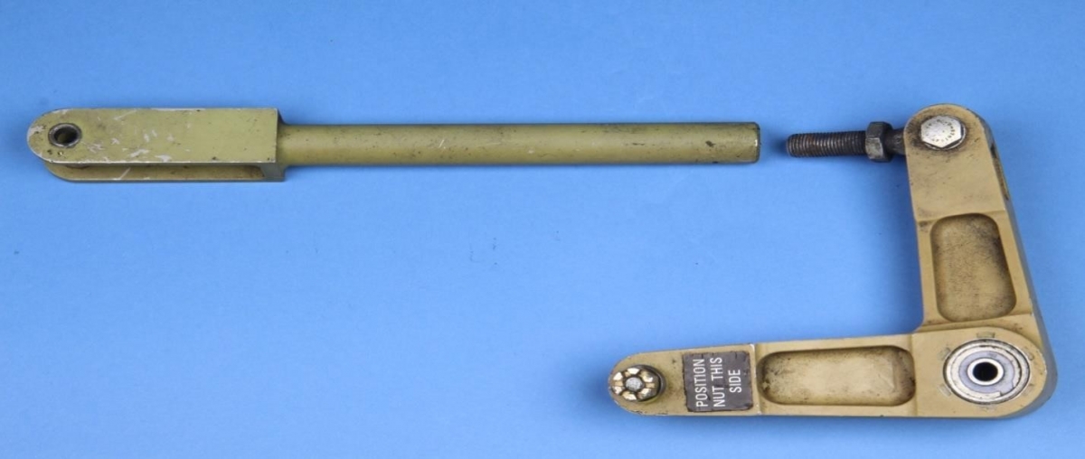 A view of the control pushrod tube separated from the rod end and its bearing showing the jam nut which secures the bearing to the control rod. [Reproduced from the Official Report]