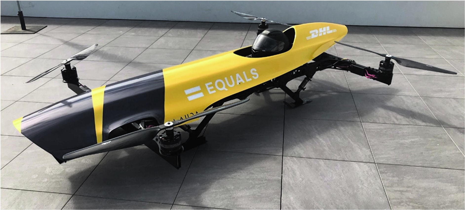 The operator of the UAV was an Australian company called ‘Riotplan Proprietary Limited’ which traded as Alauda Racing and described itself as “an Australian-based designer and manufacturer of high performance electric aerial vehicles”. It had been in existence for three years at the time of the accident flight under investigation. The UAV involved was a radio-controlled and battery-powered quadcopter with a 95kg MTOW. It consisted of an aluminium frame to which the motors, controllers and battery were attached contained within a fibreglass outer shell (see the illustration below) and was 3 metres long and 1½ metres wide. Each of its four 32-inch propellers was driven by a brushless DC motor powered from a 58.8 volt lithium polymer battery which was capable of producing 42-58 volts for “up to 8 minutes”. The UAV was controlled by a ground-based, hand-held transmitter which used a 915 Hz frequency and was stated to be capable of airspeeds of up to 43 knots. The ‘kill switch’, used by the remote pilot in the event that control of the UAV was lost, was powered by a dedicated power source and used a discrete communications channel to open a normally-closed relay which would cut power to the flight controller and cause the motors to stop.