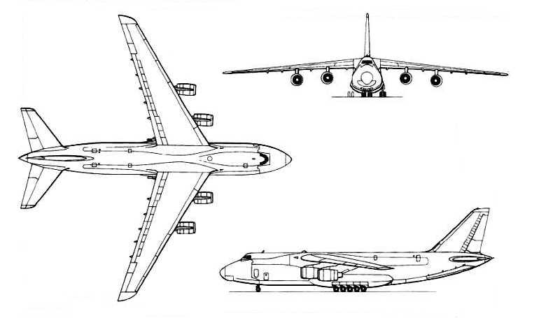 Heavylift freighter. In service since 1987. Antonovs heavylift freighter development to replace the An-22. An-124 configuration is similar to the LOCKHEAD C-5 Galaxy. Only a limited number built and remain in service. Range with max payload is 3200nm, with 120t the range is 5200nm and with 40t range is 11900nm.