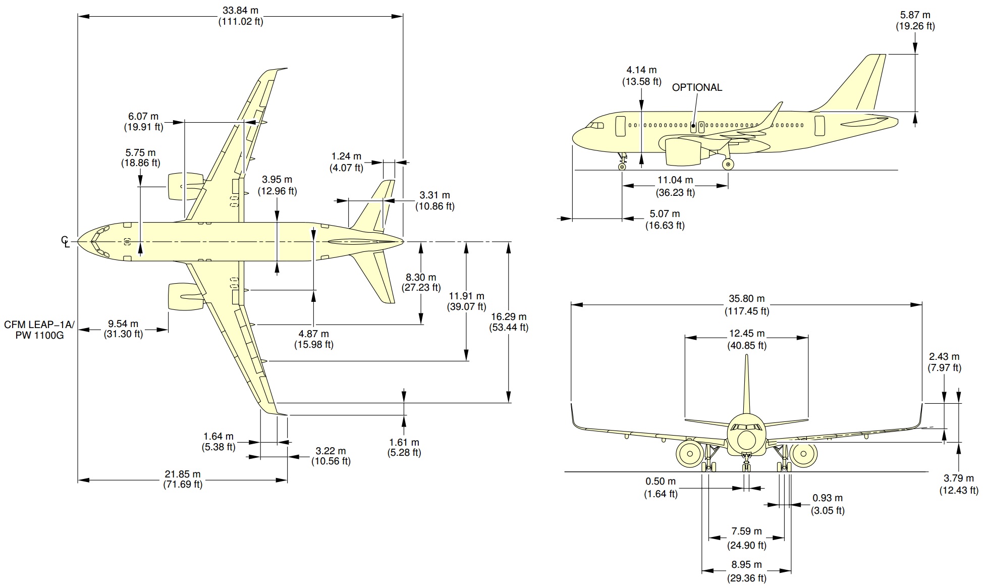 - Airbus reference document which provide to airlines, MROs, airport planners and operators the general dimensions of the aircraft, as well as the necessary information for ramp, servicing operations or maintenance preparation: Airbus A319: Airplane characteristics for aiport planning AC, 01 May 2017