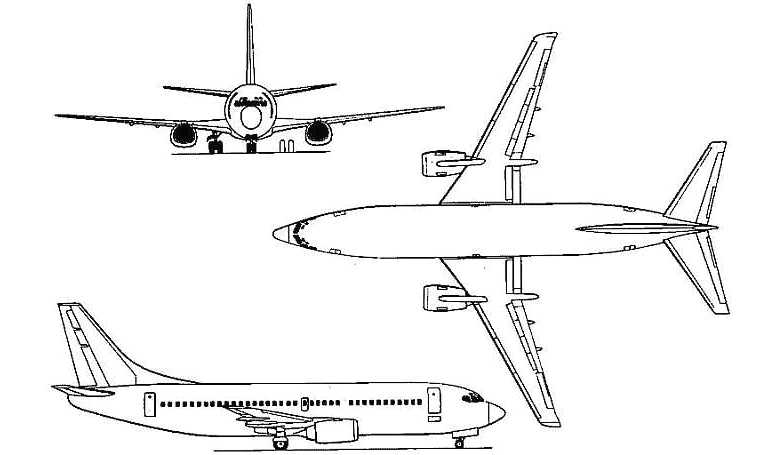 Short range airliner. In service since 1984. Initial member of second generation of Boeings B737 family (also named classic) with more powerful high bypass engines and improved aerodynamics. In order to secure ground clearance the CFM56 engines have flattened undersides. Stretched version 737-400 and shorter version 737-500. Production ceased in 1999 (2000 for the 400 model).