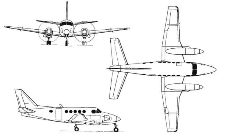 Corporate and utility aircraft. In service since 1970. Stretched development of Beech 90 King Air. Exists in many versions, A100 for military operation, B100 more powerful. Production ceased in 1984.